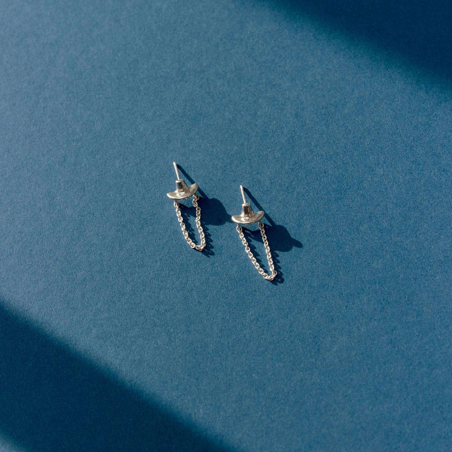 Inspired by traditional Korean hats, gat (갓), traditionally worn by yangban (양반), aristocrats and ruling class adult males in accordance with their social status. The most well-known type of gat, similar to that of a top hat but translucent, are made with fine bamboo strips or horsehair, and features a straight brim. The Gat Earrings are a playful way to challenge the tradition of class and gender roles and segregations. Afterall, anyone can wear the pants and dream big.